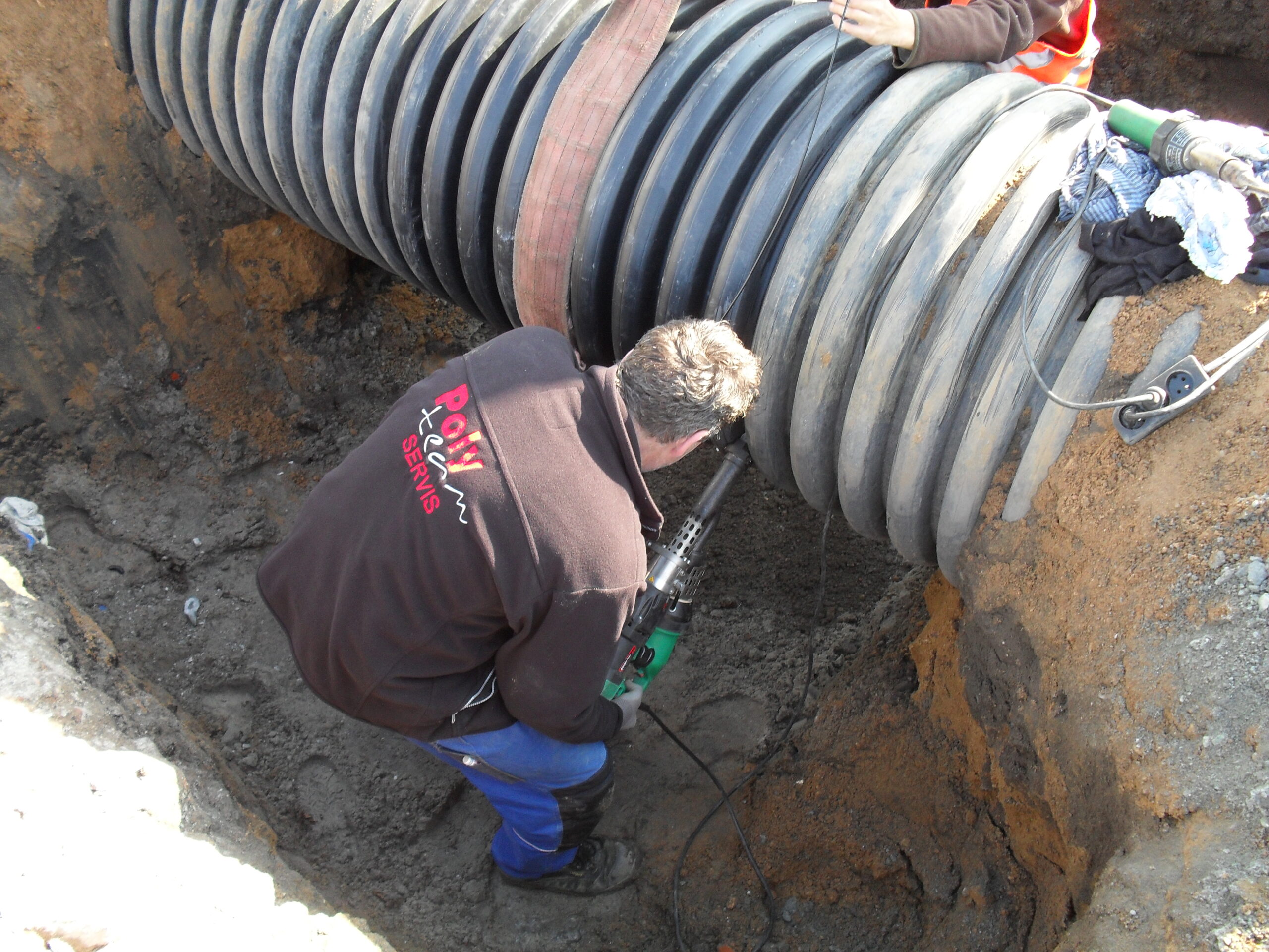 - Spawanie połączeń kanałów betonowych (okrągłych i jajowych) z wkładką tworzywową PEHD.